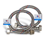 Подводка для воды «Акватехник» выпускается в стальной оплетке. Её внешний вид и эксплуатационные качества выгодно отличаются от продукции других производителей. В производстве используются только комплектующие и оборудование европейских производителей.