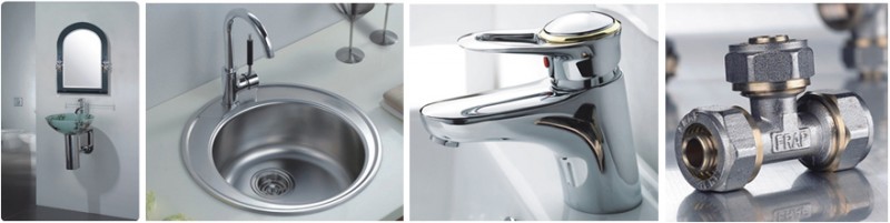 Продукция сантехнического оборудования торговой марки FRAP имеет ряд серий: смесители, аксессуары, стеклянные раковины, трубы и фитинги для полипропилена и металлопласта.