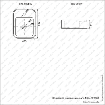 800-320309 Фигурный умывальник накладной 405х510х145 MELANA