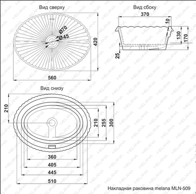800-509 Фигурный умывальник накладной 560х420х170 MELANA