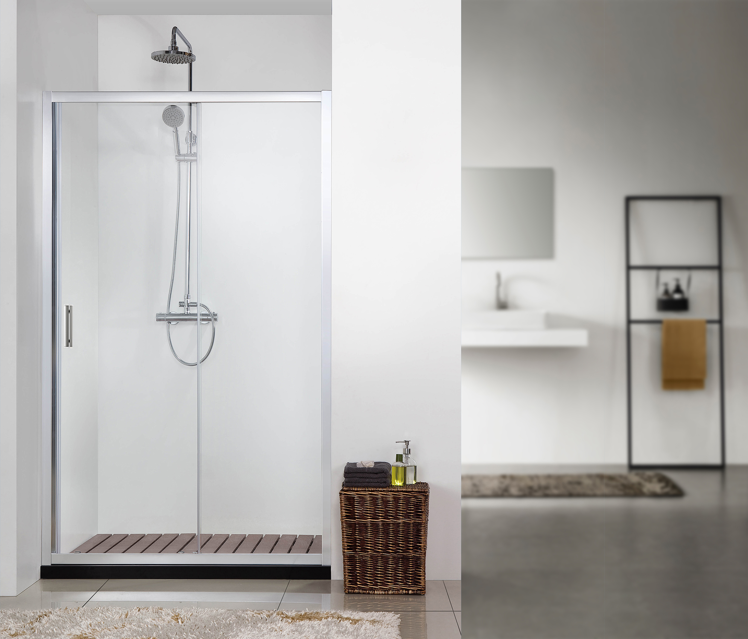 Душевые ограждения серии Time-(DF-прямое): выполнены из 6-ти миллиметрового закаленного, безопасного стекла с подвижной дверью.
