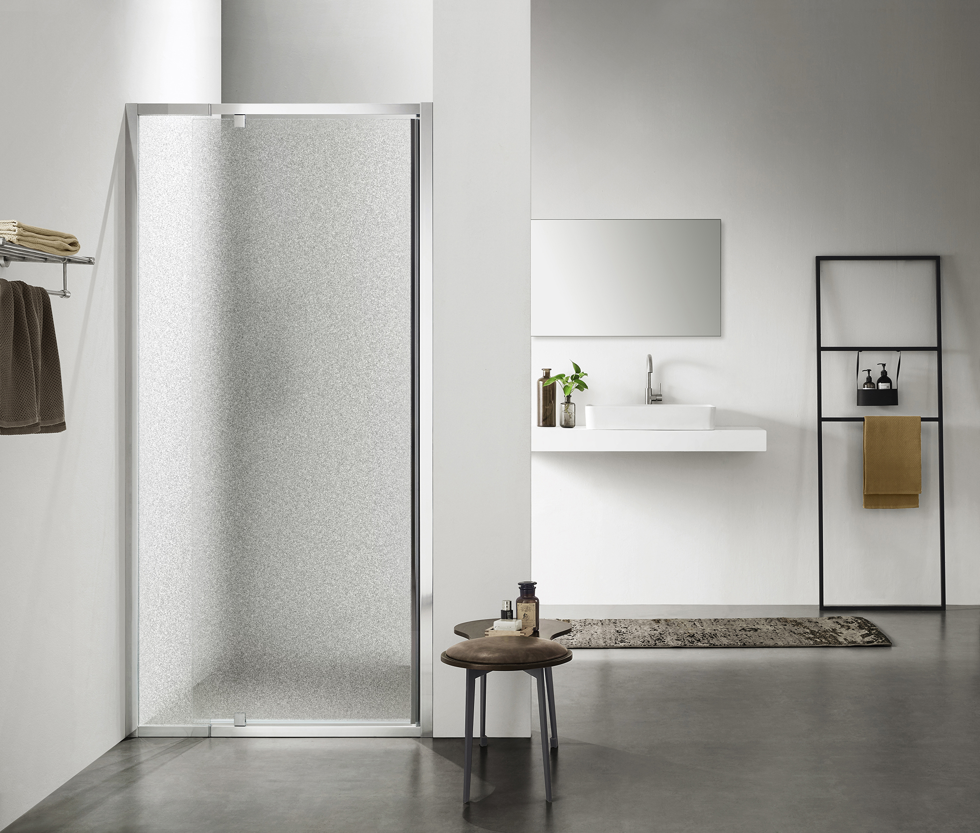 Дверь на инновационном механизме: двух поворотных стержнях сверху и снизу. Дизайнерская профильная дверная ручка во всю высоту душевого ограждения. Обладают важными качествами: удобством в использовании, элегантностью и долговечностью.