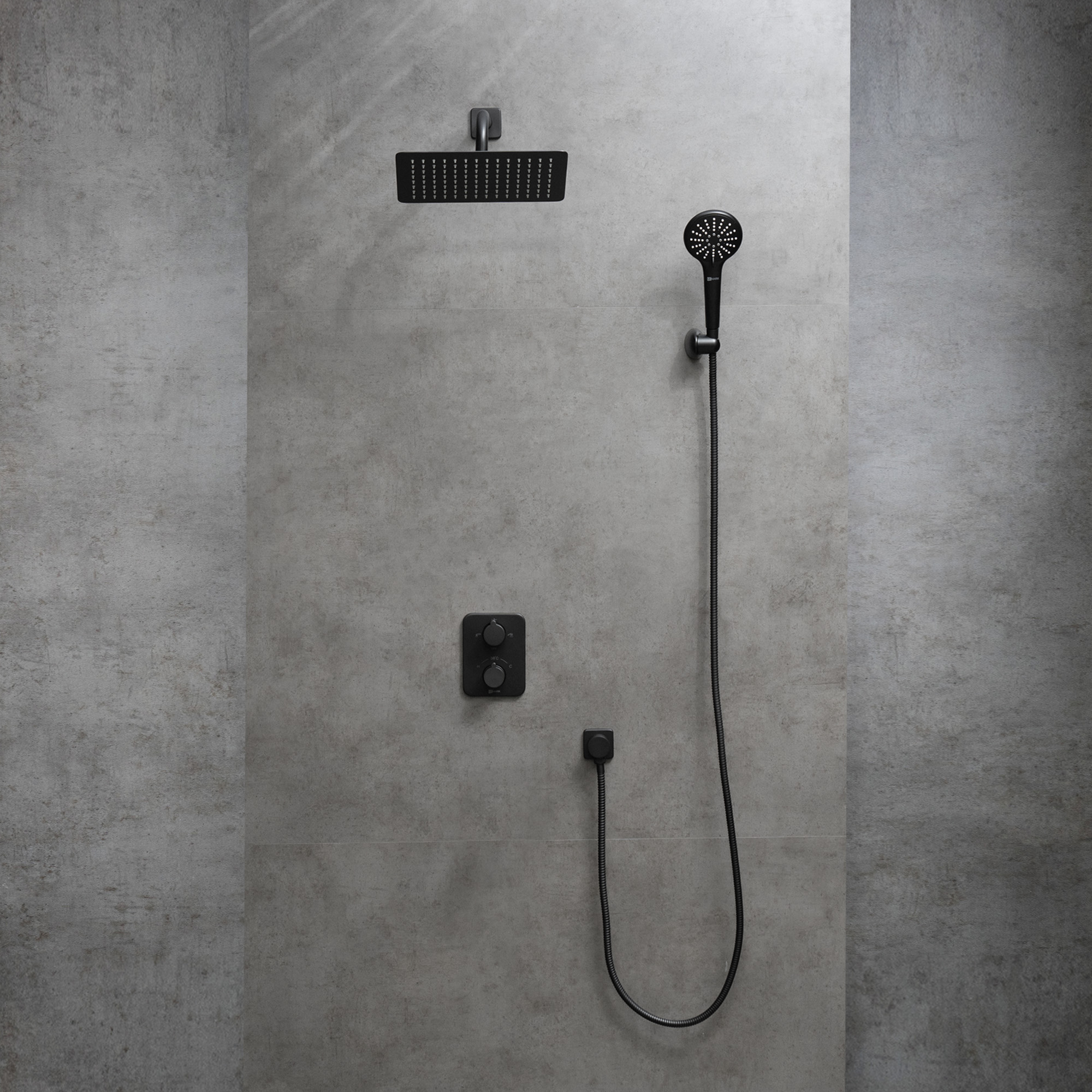 LM3749BL Bronx Смеситель термостатический для душа, встраиваемый, с доп. 3-ф. лейкой, черный LEMARK
