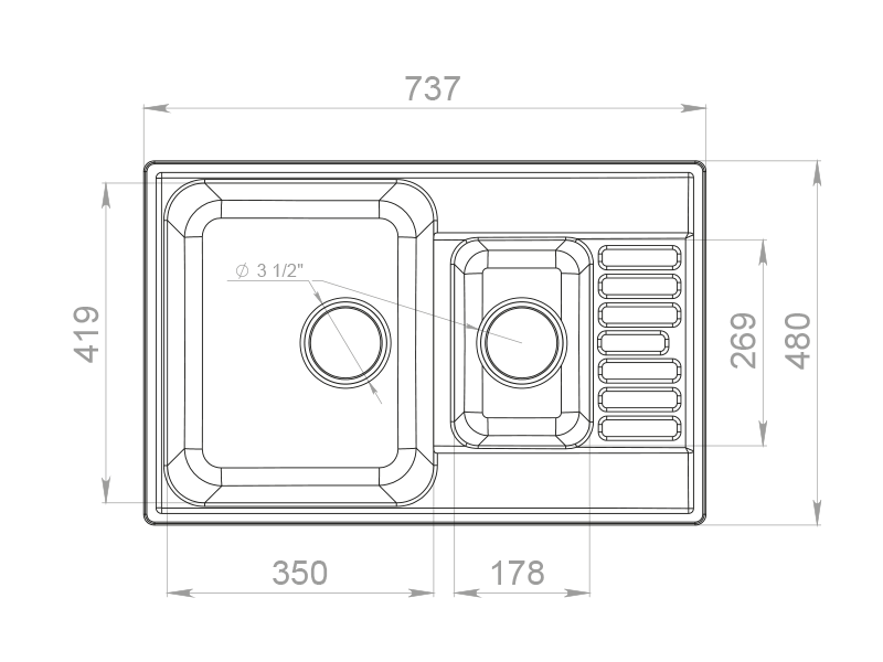 • Диаметр сливного отверстия, дюйм 3 1/2