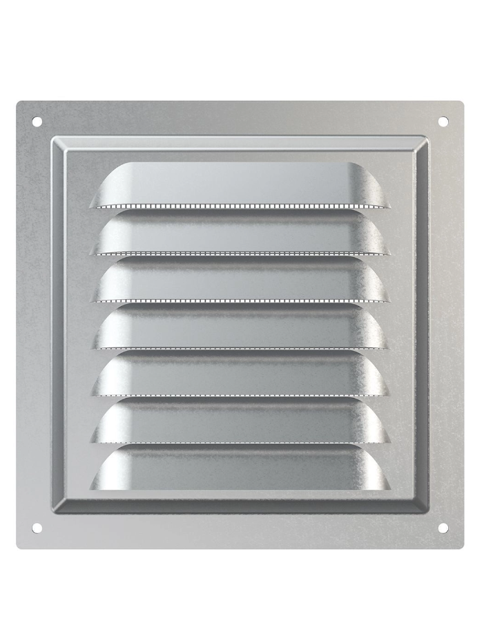 Вентиляционная решетка МЦ изготавливается из оцинкованной стали. Имеет наклонные жалюзи и антимоскитную сетку для защиты от насекомых. Сетка устанавливается в специальном углублении.