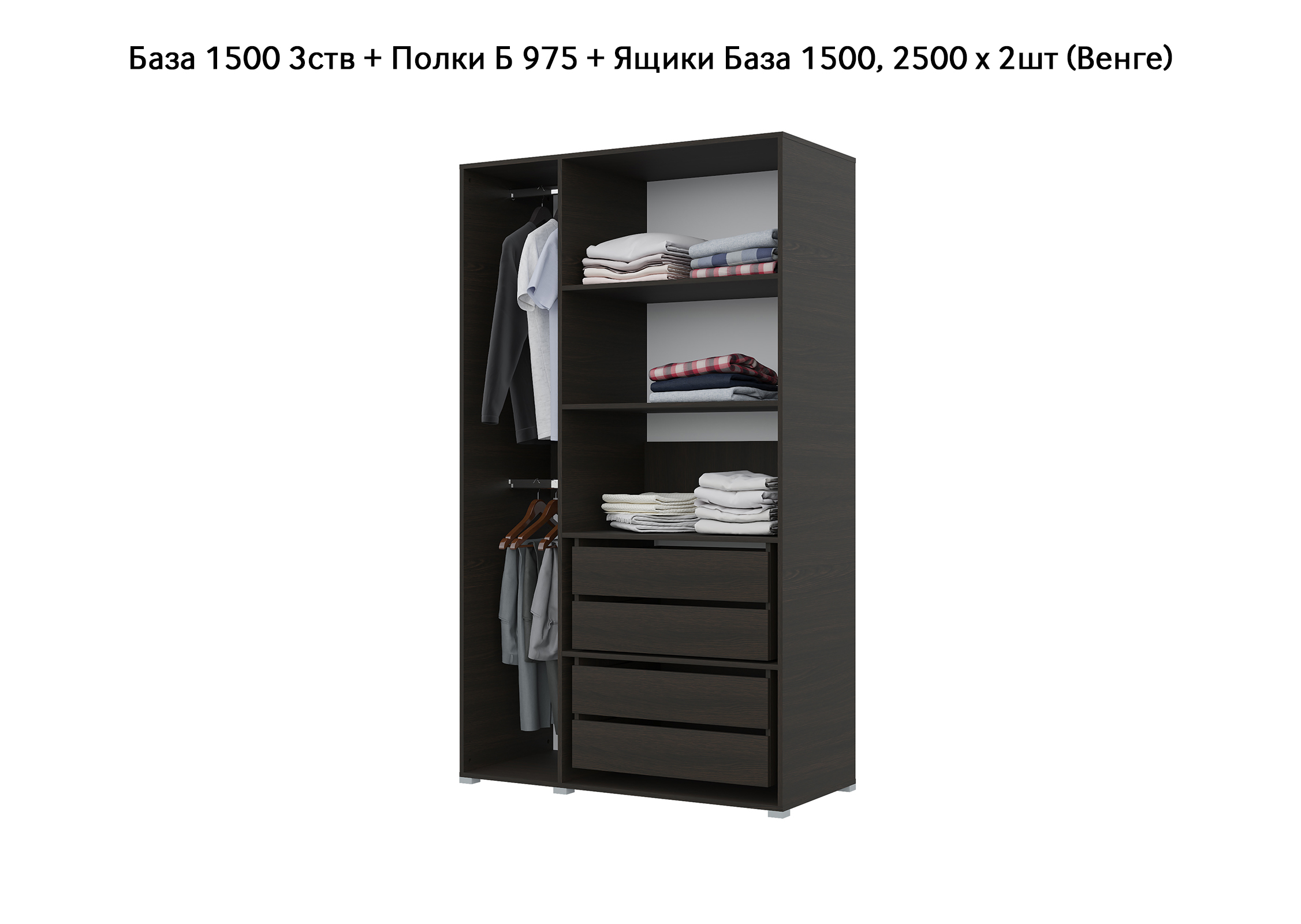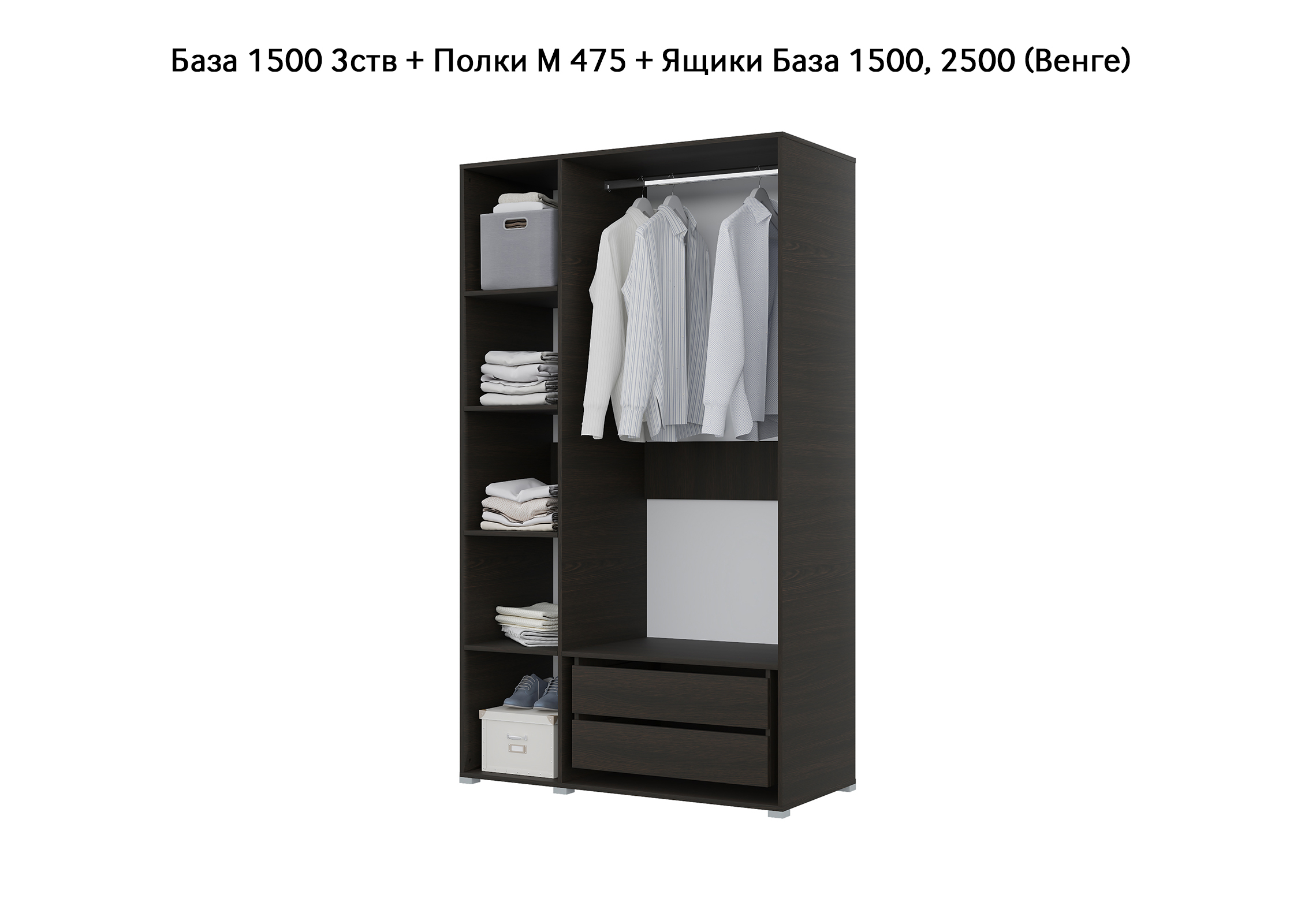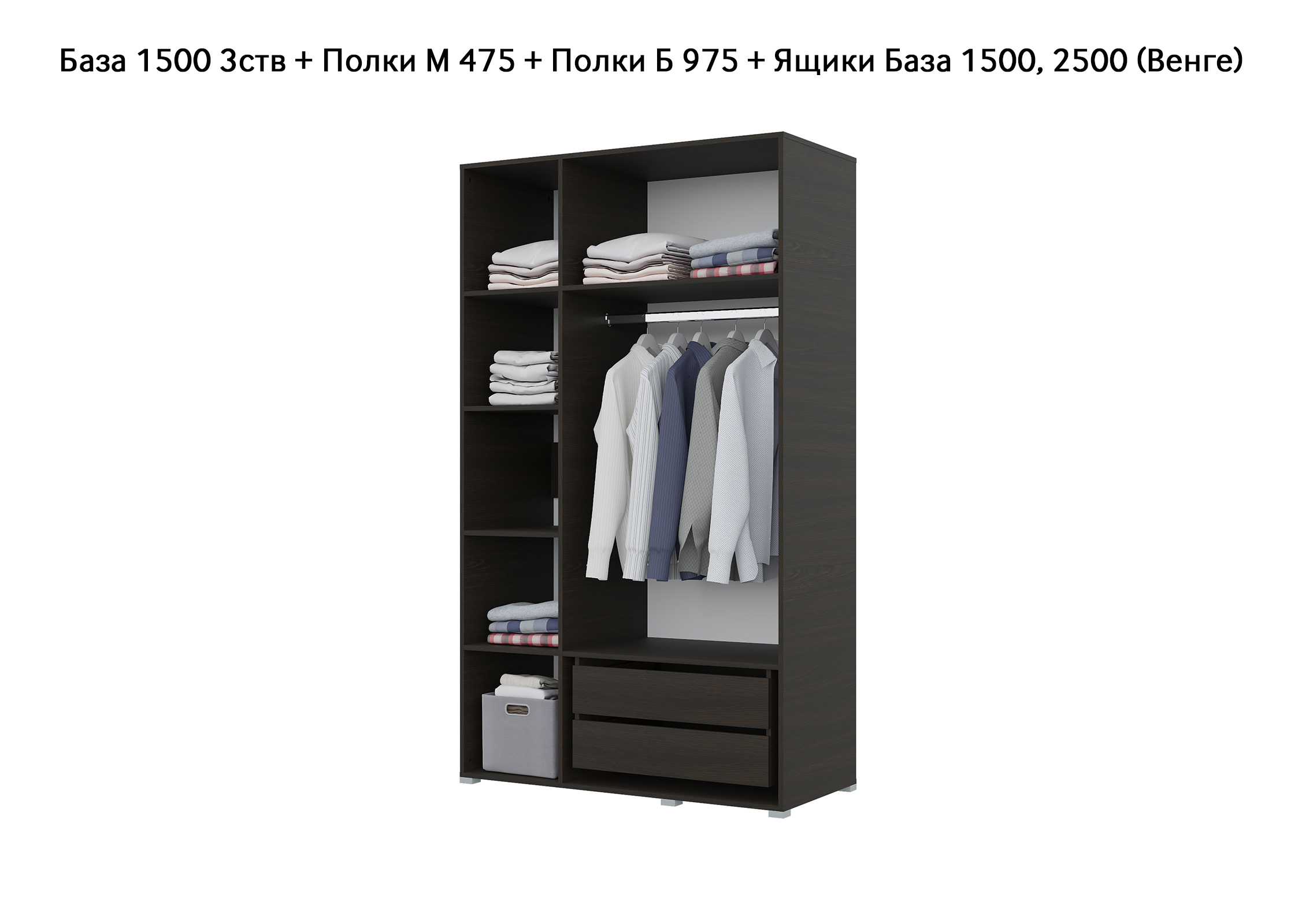 База Шкаф "Бостон" 1500 3 ств (Венге) (Боковина 3/4 ств, Крыша 1500/3, Фурнитура 3 ств) (3 места)