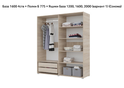 База Шкаф "Бостон" 1600 4 ств (Сонома) (Боковина 3/4 ств, Крыша 1600/4, Фурнитура 4 ств) (3 места)