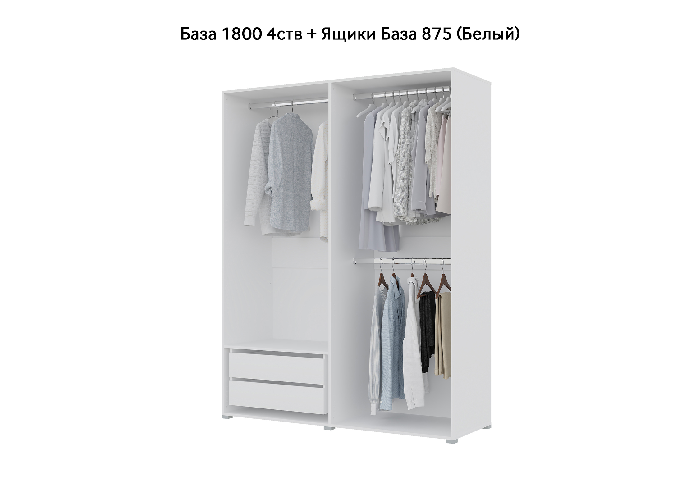 База Шкаф "Бостон" 1800 4 ств (Белый) (Боковина 3/4 ств, Крыша 1800/4, Фурнитура 4 ств) (3 места)