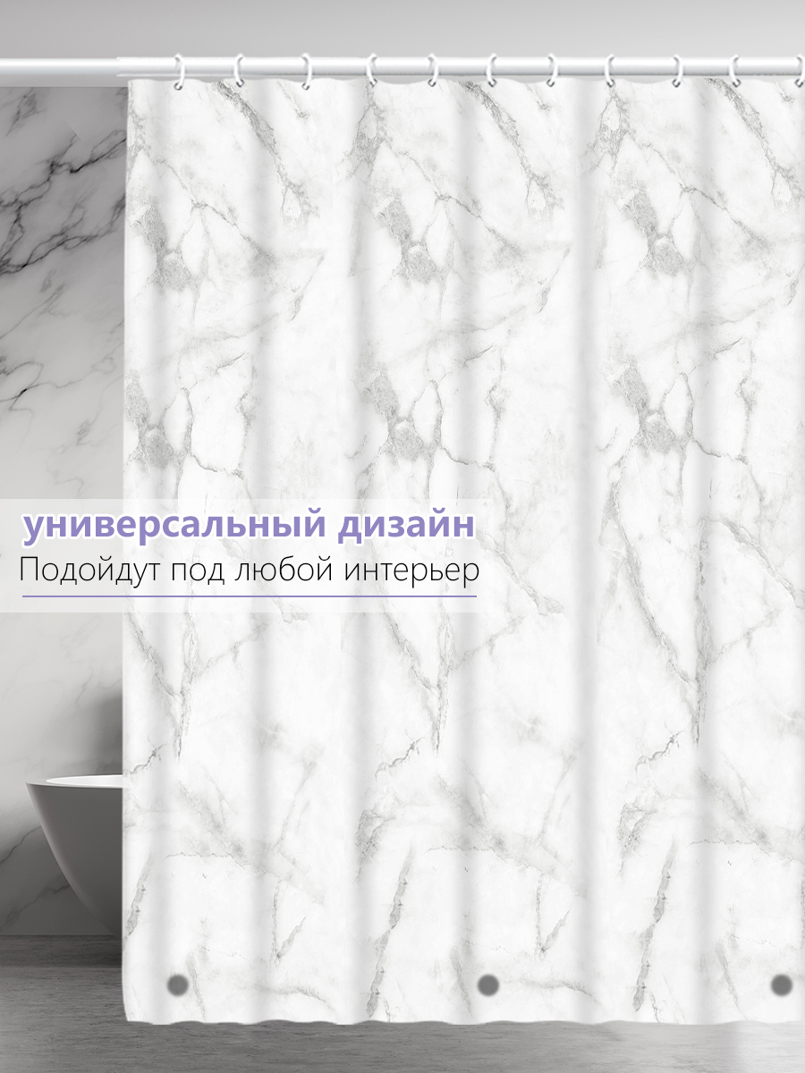 Штора д/ванн SANTREK HOME 180х180 PEVA MS0737 с кольцами белый мрамор