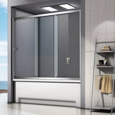 Эта шторка выполнена из прочного пластика или стекла ( в исполнении грейпи прозрачного типа), которая хорошо переносит влагу и не выцветает на солнце. Шторка легко монтируется и установлена на металлические профиля, которые входят в комплект. Некоторые модели можно отрегулировать, чтобы она подходила к размеру ванны.