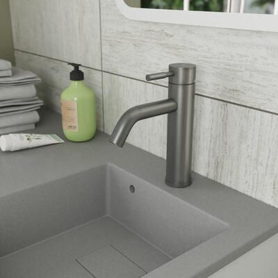 Смеситель для раковины RUSH Melos арт. SUS1101-11Grey с металлической ручкой изготовлен из нержавеющей стали SUS304 и имеет рычажное управление.