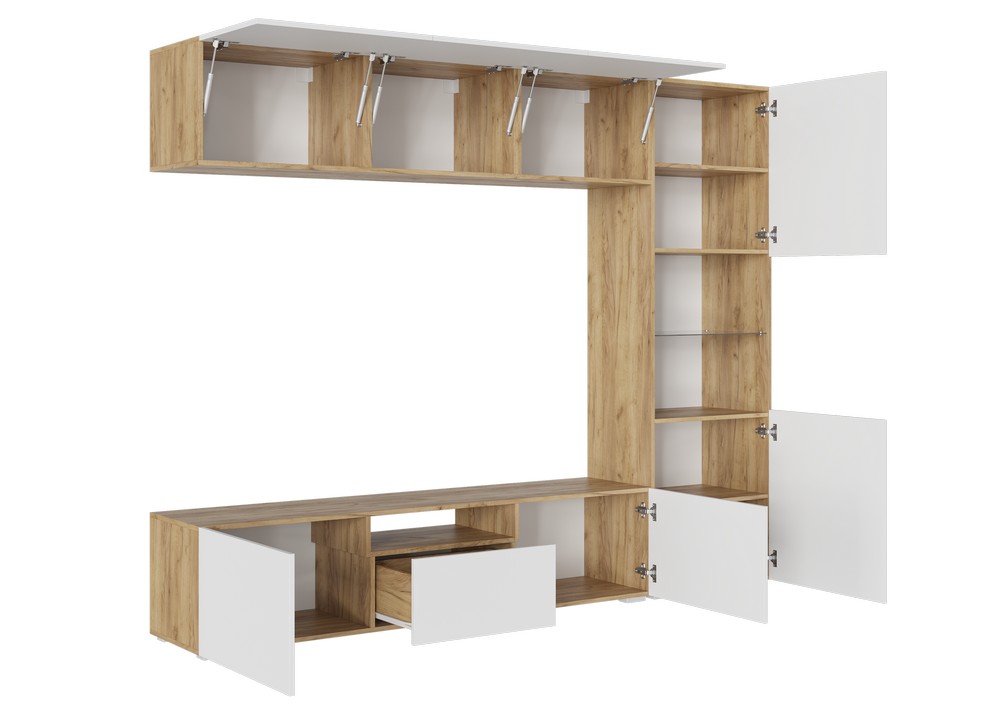 СТЕНФОРД Стенка МДФ Корпус - Дуб Крафт золотой Фасад МДФ - матовая Белый Софт (4 места) ОЕ135