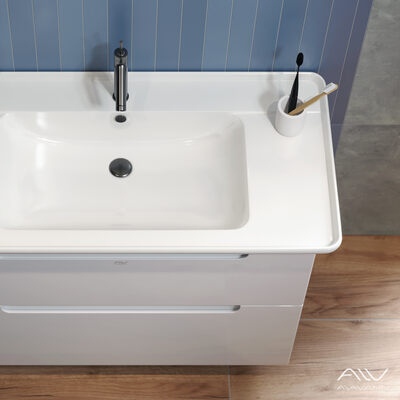 Объемная белая современная тумба Berta 105 сочетает в себе практичность, функциональность, изящество стиля и высокое качество. Тумба украсит просторную ванную комнату, в отделке которой использованы современные или классические стили интерьера. Гладкие фасады оборудованы комфортными ручками-зацепами, выполненными в виде внутренней фрезеровки фасадов ящиков. Фасад изделия покрыт белой глянцевой эмалью с УФ-фильтром. В тумбе Берта 105 имеются два вместительных выдвижных ящика на направляющих с доводчиками, которые внутри отделаны фирменным материалом – интерьерный лен и укомплектованы съемными делителями. Ящики позволят практично организовать хранение необходимых принадлежностей и бытовой химии. Производитель оставляет за собой право без предварительного уведомления покупателя вносить изменения в конструктив или технологию изготовления изделия, которые не влияют на функционал изделия.