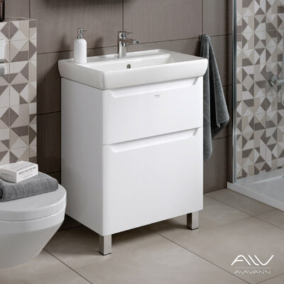 Современная напольная тумба в ванную Лана 70 имеет гладкий фасад и два выдвижных ящика с декоративными зацепами для хранения нужных мелочей. Ящики изготовлены из ДСП с применением фирменного материала Твист. Для удобства они оснащены доводчиками плавного закрывания. Производитель тумбы под раковину Lana (размер 70 см) гарантирует длительную ее эксплуатацию в условиях повышенной влажности, так как корпус из ДСП и фасады из МДФ были обработаны влагостойкой белой глянцевой эмалью. Это практичное и функциональное изделие (ширина 70 см), представляющее собой прекрасный образец современного дизайна, способно вписаться в любой интерьер помещения. Производитель оставляет за собой право без предварительного уведомления покупателя вносить изменения в конструктив или технологию изготовления изделия, которые не влияют на функционал изделия.