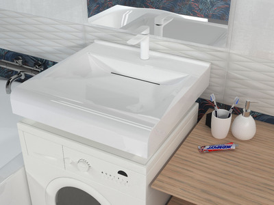 Умывальник "Фортуна 60" литьевой мрамор, 595х597х116 над стиральной машиной, в комплекте кроншт., крепл. и выпуск с пер. г. Ульяновск