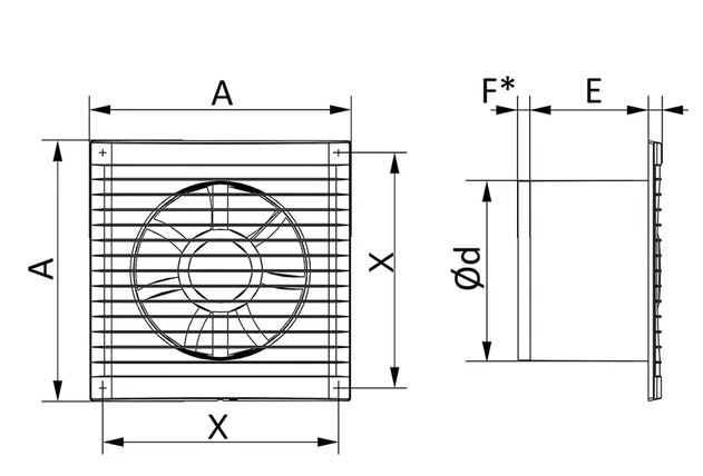 Вентилятор серии E с диаметром фланца 100мм. E - тонкая лицевая панель выгодно отличает данный вентилятор от своих конкурентов. Лицевая панель, корпус и крыльчатка изготовлены из ABS-пластика. Двигатели вентиляторов данной серии оснащены встроенной термозащитой. Благодаря своему красивому дизайну и демократичной цене, пользуется достаточно большой популярностью у потребителей.
