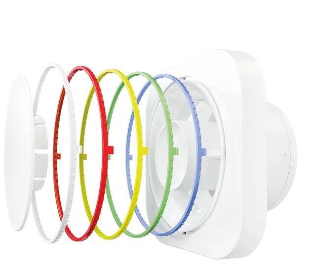 • Комплектация вентилятор в сборе, монтажный комплект, паспорт/инструкция по эксплуатации, цветные пластиковые кольца 4 шт.