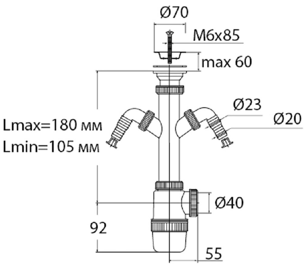 • Назначение Для моек и раковин с диаметром слива 50-60 мм